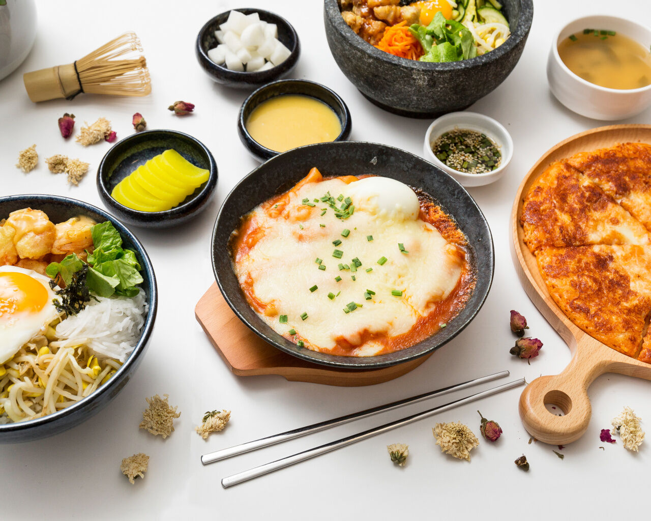 BIBIMBAP POULET FRIT, dans une pierre chaude